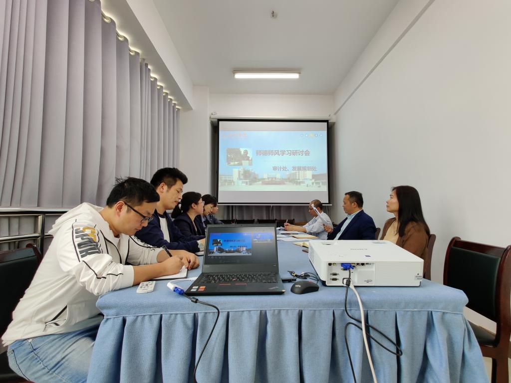 为进一步推进师德师风建设,深入挖掘和宣传教师先进典型及师德失范警示教育活动。2022年5月12日上午,审计处和发展规划处联合在逸夫楼A602会议室举行“师德师风学习研讨会”。审计处和发展规划处全体人员参会,会议由审计处党支部书记、处长段小明主持。